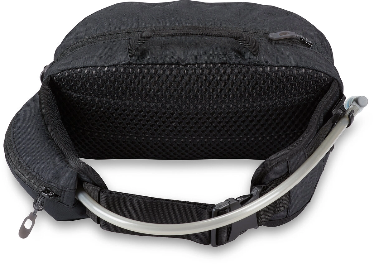 De Dakine Hot Laps 5L is een van de meest veelzijdige heuptassen op de markt! De Hot Laps 5L heeft een ruime inhoud, zodat u met gemak al uw belangrijke spullen voor onderweg kunt meenemen. De heuptas heeft een ruim hoofdcompartiment met verschillende vakjes en een voorvak met ritssluiting. Uniek aan de Hot Laps 5L is het geïntegreerde reservoir van 2 liter, zodat u ook altijd voorzien bent van genoeg water. Het reservoir is aangesloten op een praktische drinkslang. De heupriem is eenvoudig te verstellen en zal niet knellen. Daarnaast is de Hot Laps 5L voorzien van een ademend AirFlow- achterpaneel, zodat zweet geen kans heeft! De afmetingen van deze heuptas zijn 30 x 18 x 11 centimeter en hij weegt slechts 470 gram!