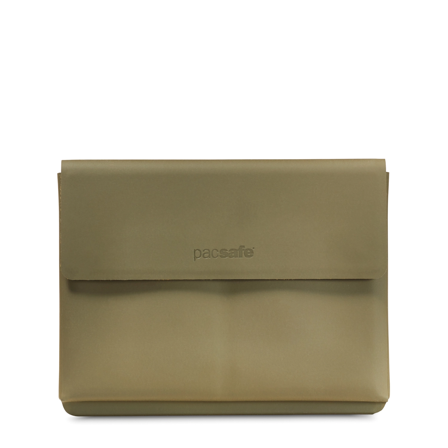 Deze enorm handige etui is van het welbekende merk Pacsafe. Deze elegante etui is zo ontworpen dat geen enkele dief uw pasjes of paspoort ongewild kan scannen. Het polyester materiaal is voorzien van RFIDsafe blokkeer materiaal. De etui biedt ruimte voor een paspoort en vier pasjes. Op deze manier kunt u altijd veilig over straat. De etui kunt u dichtklikken met behulp van twee drukknoppen, zodat uw waardevolle eigendommen, zoals pasjes, er niet uit kunnen vallen.