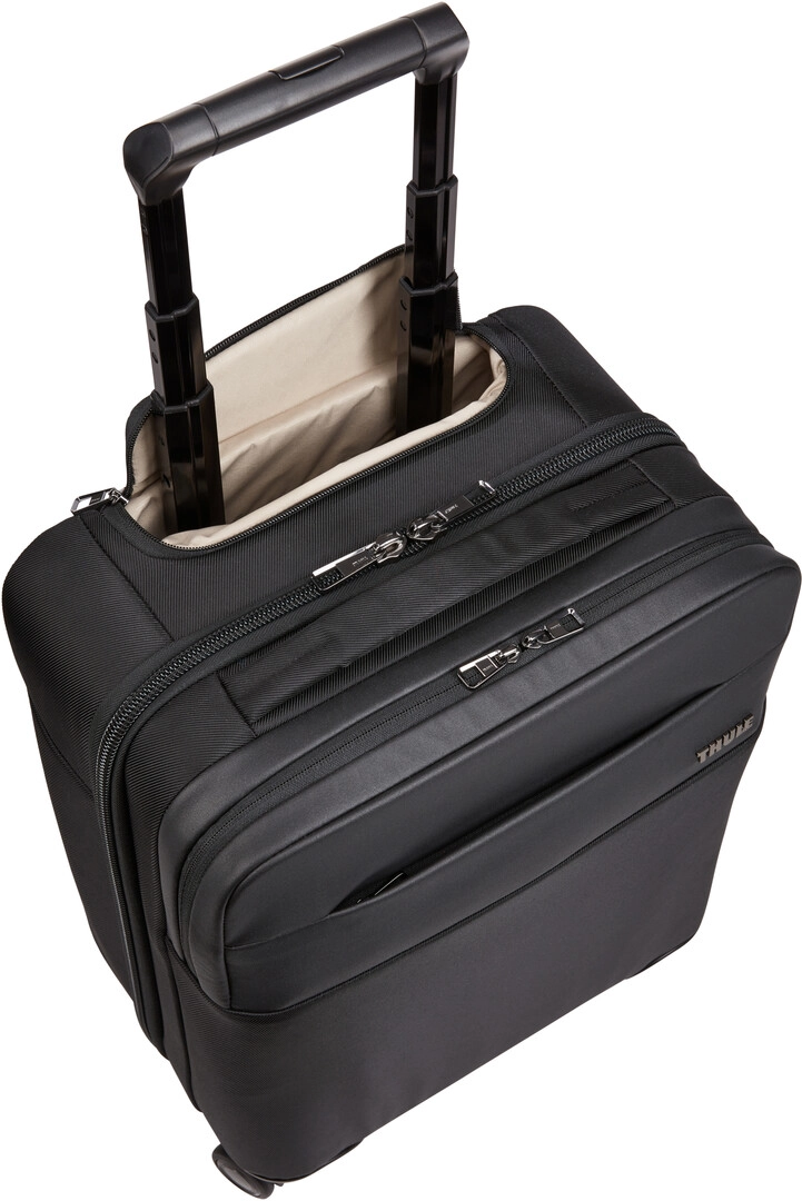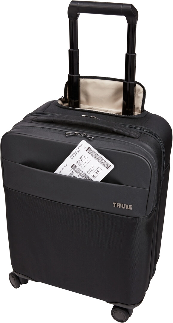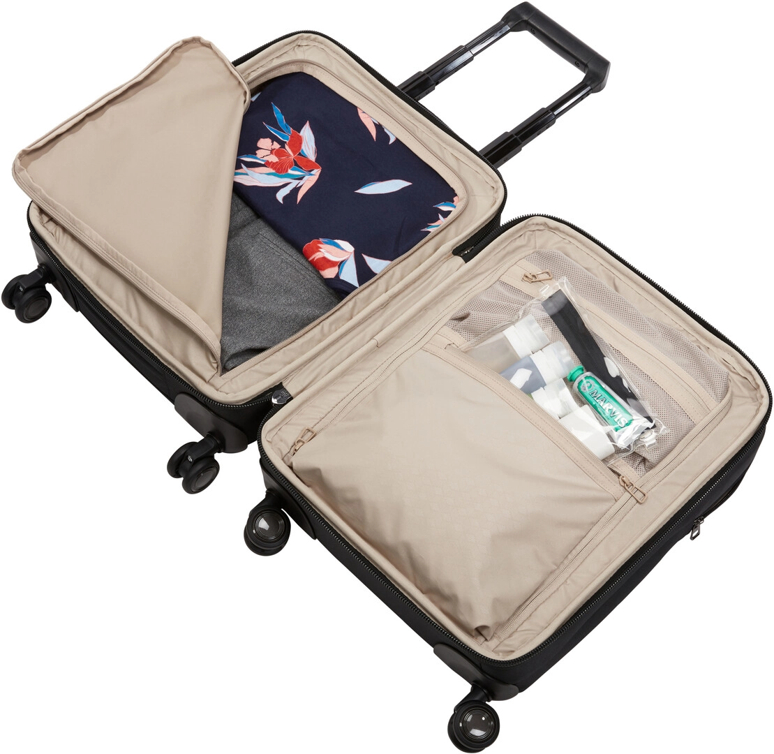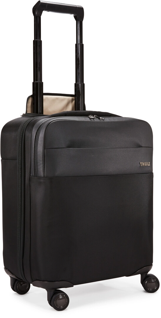 De Spira Compact Carry On Spinner Black is een hoogwaardige reiskoffer van het gerenommeerde merk Thule. De koffer is onderdeel van de Spira Compact Carry On Spinner serie en heeft een zwarte kleur. Het materiaal is polyester en de afmetingen zijn 36 x 24 x 46 cm. Met een inhoud van 27 liter en een gewicht van 2.97 kg is deze koffer ideaal voor korte reizen. De unieke gesplitste kofferconstructie maakt het gemakkelijk om in te pakken en de twee privacypanelen met ritssluiting bieden extra veiligheid. Het gespecialiseerde zakenvak met gewatteerde steekvakken voor uw laptop is een handige toevoeging. Het aangepaste wielensysteem met 8 spinners zorgt voor soepele mobiliteit en de telescopische handgreep en V-kanaal trolleysysteem maken het vervoer van de koffer nog eenvoudiger. De grote YKK-ritssluitingen zorgen voor extra duurzaamheid.