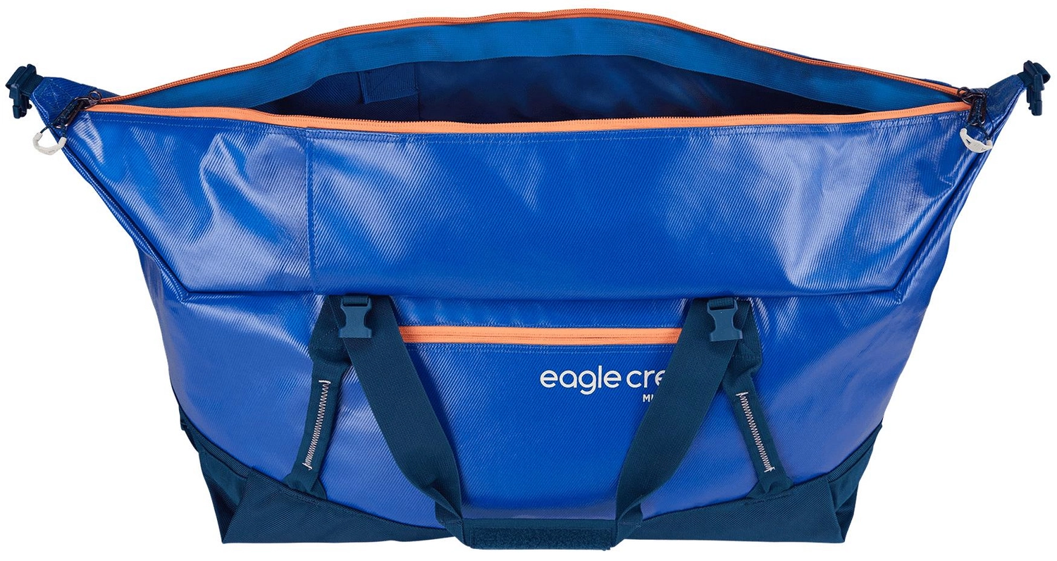 Deze reistas komt uit de serie Migrate duffel van het merk Eagle Creek. De reistas heeft een uitgebreide capaciteit van 90 liter en bevat een grote opening met een interne stormflap. De zijgespen kunnen ontgrendeld worden om nog een extra 8 liter vrij te geven. Externe compressieriemen houden de uitrusting op hun plek en de versterkte handgrepen dienen ook als bevestiginglocaties. De bodem is gemaakt van kunststof van voorruiten uit stortplaatsen. Deze bevat een naadloze bodembadconstructie zodat wanneer u de tas in een plas neerzet er geen water binnen komt. De reistas is om te toveren tot een backpack door de rugzakriemen los te maken. De tas is voorzien van een voorvak met ritssluiting en is compact op te vouwen voor opslag. De ritssluiting bevat grote lussen zodat deze ook met handschoenen aan gemakkelijk open gemaakt kan worden.