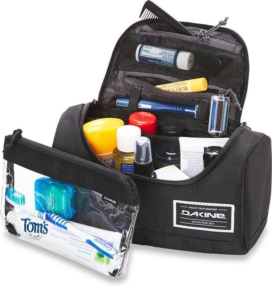 Dit is de praktische Revival Kit M toilettas van het merk Dakine. De Revival Kit M is gemaakt van stevig en waterafstotend polyester en heeft een inhoud van 4,13 liter. De ruimte is praktisch ingedeeld en biedt u meer dan voldoende ruimte voor al uw benodigdheden voor een reis of outdoor avontuur. De gekozen materialen zijn daarnaast zeer stevig en de Revival Kit M zal dan ook zeer lang mee gaan. De afmetingen van deze toilettas zijn 25 x 15 x 11 centimeter.