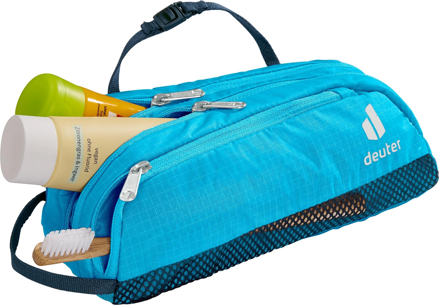 Deze toilettas van Deuter is ideaal voor op reis. De toilettas is namelijk ontzettend licht en eenvoudig bij u te dragen. Dit komt door de kliksluiting die op veel plekken te bevestigen is en de toilettas is ook nog eens zelfstaand door de stevige bodem. De tas heeft twee ritscompartimenten. Zo kunt u snel en eenvoudig bij uw toiletspullen en behoudt u ook het overzicht. Dit langwerpige model is eenvoudig mee te nemen en is ideaal te gebruiken in combinatie met een backpack.